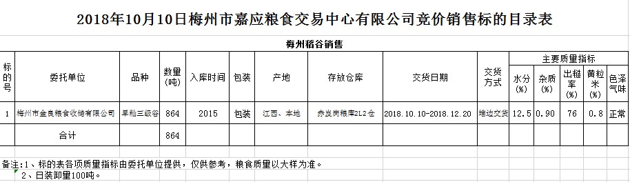 交易時(shí)間和地點(diǎn):2018年10月10日(星期三)上午10時(shí)。廣東省梅州市彬芳大道南161號(hào)梅州市糧食交易中心3樓。