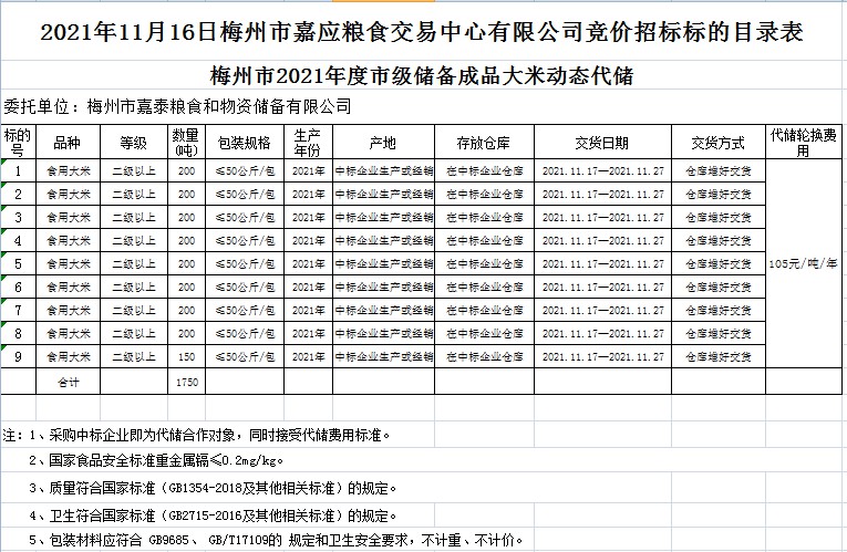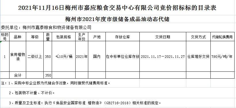 梅州市2021年度市級(jí)儲(chǔ)備成品糧油動(dòng)態(tài)代儲(chǔ)及包干輪換費(fèi)用公開(kāi)招投標(biāo)公告