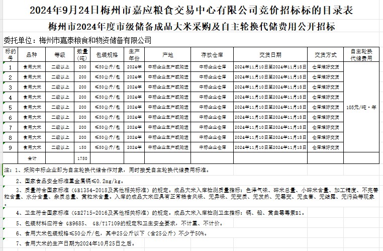 梅州市2024年度市級(jí)儲(chǔ)備成品大米采購(gòu)及自主輪換代儲(chǔ)費(fèi)用公開(kāi)招標(biāo)公告
