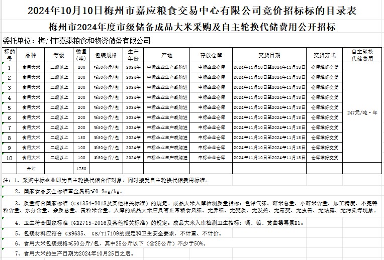 梅州市2024年度市級儲備成品大米采購及自主輪換代儲費用公開招標(biāo)公告
